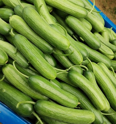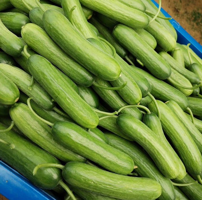Greenhouse: Mediterranean Snack Cucumbers; Green & Colored Capsicum Peppers (Bell Peppers); Beef & Plum Tomatoes